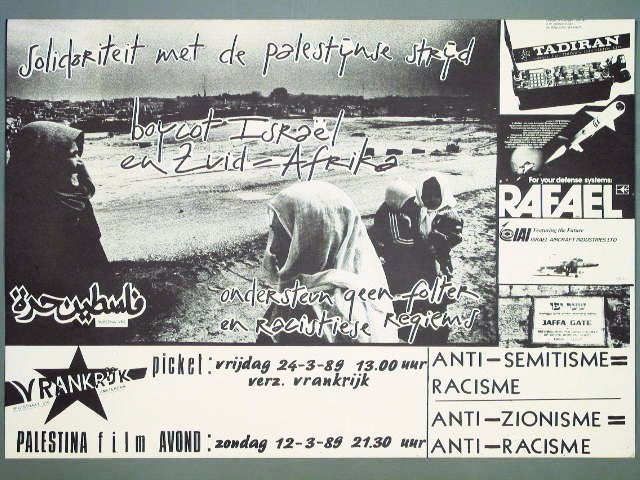 "Solidariteit met de palestijnse strijd, boycot Israel en Zuid-Africa"